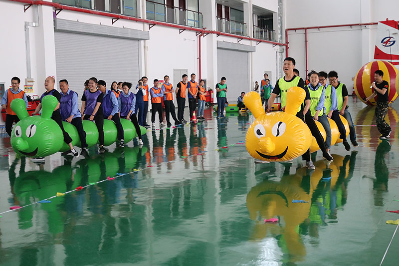 聯(lián)誼活動在激情澎湃的音樂聲中,于5月4日上午9時正式拉開序幕,全體隊員被打亂原公司隸屬關(guān)系,混分成紅、黃、紫、綠4個小隊進(jìn)行PK,運動教練帶領(lǐng)大家進(jìn)行了簡短熱身操后,活動開始了第一個比拼項目—— “同舟共濟(jì)”,每小隊成員再次拆分為兩小組,隊員需手握 “毛毛蟲”在賽道兩端交替跑完全程,用時最短即可獲勝;組員們迅速打成一片,各小組分工協(xié)作、各隊都不甘落后;PK氛圍瞬間高漲,聯(lián)誼活動也隨即進(jìn)入高潮;活動接著進(jìn)行了“運轉(zhuǎn)乾坤”、“履帶戰(zhàn)車”、“同心戰(zhàn)鼓”、“集體跳繩”等項目的比拼,經(jīng)過緊張、激烈的角逐,最終紫隊榮獲冠軍,黃、綠、紅隊緊隨其后,整個聯(lián)誼活動在一片歡聲笑語中圓滿結(jié)束。
