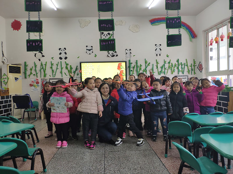 最后科普人員向孩子們分發(fā)手拋飛機(jī)玩具,科普人員與孩子們一起動(dòng)手,拼接好玩具,并講解正確的飛行方法。孩子們開(kāi)心地拿著飛機(jī)玩具在教室里放飛,看著飛機(jī)可以飛向他們所拋的方向,他們歡呼雀躍。